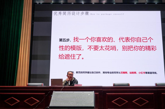 刘方义分别从“整理个人信息、梳理最出彩的学习业绩、开展精心创作”等6个步骤细致阐述了如何设计优秀的求职简历,强调简历制作时要让事实说话,让作品说话,通过作品的呈现让简历更加丰满和精彩。他还通过展示各类简历案例,提醒同学们要注意结合不同企业的招聘需求,梳理出自己的业绩和特长,加强就业简历的针对性,“个性化”地设计包装自己,为实现自己的梦想助力。最后,刘方义提醒同学们要注意就业简历的提交方式,鼓励同学们要树立求职信心。