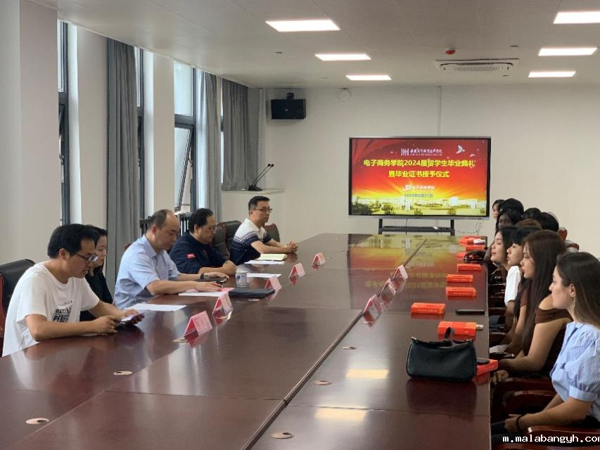日期:2024-06-24 来源:6月21日上午,电子商务学院在学院1212会议室举行2024届留学生毕业典礼暨毕业证书授予仪式。电子商务学院院长夏名首、电子商务教研室主任何兴旺、外事办黄亚琴、教师代表、全体毕业留学生和部分在校留学生现场参加了仪式。仪式由留学生班辅导员王洋洋主持。