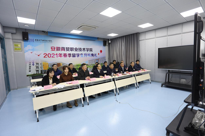 李忠首先代表全体师生对留学生加入我校表示热烈欢迎,对首届留学生顺利开班表示由衷祝贺。接着,他从办学历史、发展现状、师生规模等方面介绍了我校的基本情况,同时介绍了学校所在地芜湖的地理位置、交通和环境。他指出,作为一所百年老校,学校始终秉承“厚德弘商 笃学励能”的校训,始终坚持把“立德树人”作为根本任务,相信同学们在未来的学习中定能感受到“创新超越,诚信图强”的安商精神。最后,他鼓励留学生们不负韶华、珍惜机会,利用一年的时间认真学习汉语,深入了解中国文化的博大精深,感知中华文明的独特魅力,并期待他们能在疫情之后尽快到校学习。