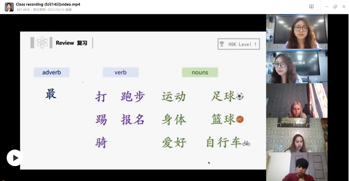 为了让不同国家留学生们尽快适应在线汉语学习,授课团队花费数倍时间进行教学研讨和备课。网络授课不同于教室上课,由于教学互动方式受限,课堂活动很难玩出“花样”,因此,老师们常常钻研互联网教学方法,在课后讨论交流教学心得,充分利用钉钉授课平台的优势,耐心详实地讲解课程,确保提高学生课堂高参与度和专注度。遇到重难点,还以微课、群内互动等形式进行课后辅导,帮助学生们巩固所学知识。因为汉语学习复杂,授课老师除使用中英双语外,有时还利用翻译软件,用不同国家学生的母语进行辅助教学。