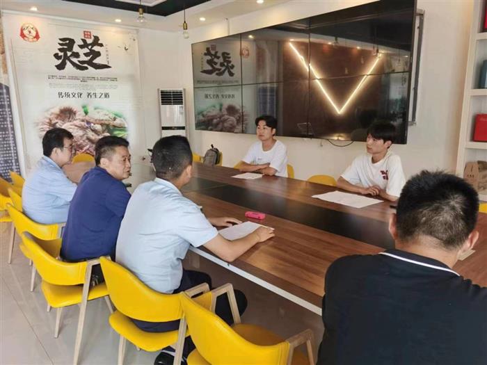 东邻张店镇,南接嵩寮岩村,西连但家庙,北靠凤凰台。毛湾村位于六安市金安区东河口镇西部,在巍巍群山的环抱之处,在云雾缭绕的意境里,村舍和农田依着山势排列布局。志愿者们抵达毛湾村后,深入至乡村基层,奔走于大街小巷,积极熟悉村“两委”工作人员,了解村情村貌,为推进电商振兴乡村专项活动做了准备。次日,吴涛和程语重同学与毛湾村党支部书记汪开发等两委人员召开会议,共同商讨打通毛湾村农产品出村“最后一公里”的问题,探索直播带货新路径,一起完成“灵蟾湾”抖音、公众号等建设工作,以互联网+宣传、互联网+直播的方式,推介“毛湾”牌特色产品,助推乡村振兴。