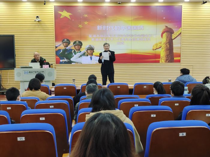12月8日下午,应金融科技学院党总支邀请,芜湖市新四军历史研究会副会长张武来校作题为《新时代的中国国防》的专题报告。金融科技学院全体教师、学生党员、入党积极分子共同聆听了报告,报告由金融科技学院党总支书记徐翔主持。