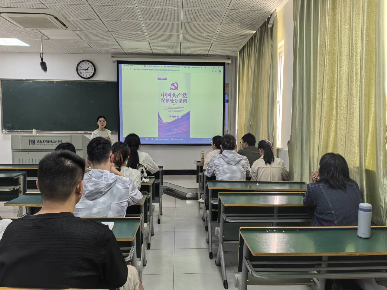 为深入学习贯彻《中国共产党纪律处分条例》,不断加强支部党员干部党性教育和纪律建设,推动全面从严治党向纵深发展。4月24日,金融科技学院金融管理教研室党支部召开党纪学习教育主题党日活动,支部书记许贤丽主持会议并做动员讲话,支部全体党员参加。