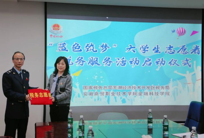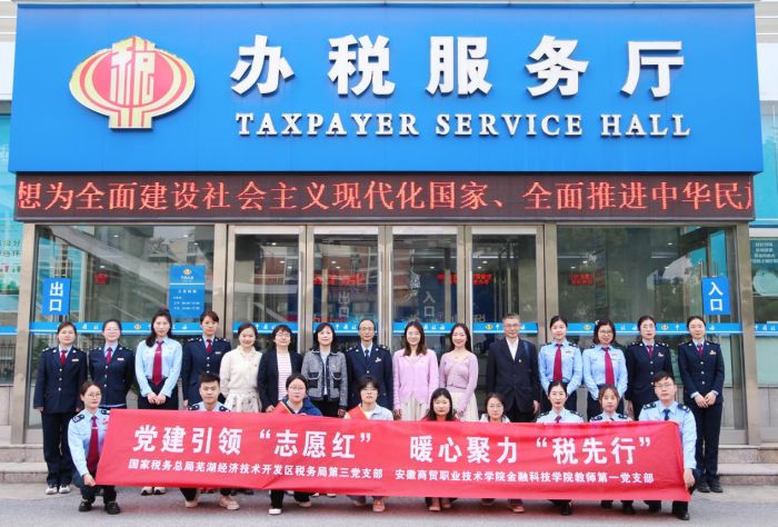 4月12日,金融科技学院教师第一党支部联合国家税务总局芜湖经济技术开发区税务局组织开展特色主题党日活动——“蓝色筑梦”大学生志愿者税务服务活动启动仪式,金融科技学院副院长丁婷、教师第一党支部书记李慧君、经开区税务局党委委员、副局长王强出席活动,党支部全体党员参加活动。