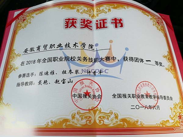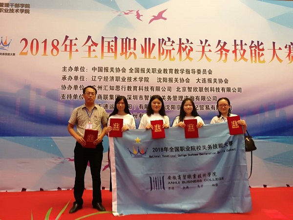 6月23日,2018年全国职业院校关务技能大赛在沈阳举行,来自全国各地的53支代表队在辽宁经济职业技术学院展开了激烈的角逐。本次大赛分为进出口商品归类、单证处理、质量监控、报关流程操作等四个赛项。由我校经济贸易系戴艳、赵宝山两位老师指导的来自报关与国际货运专业的三名选手陈迪雅、许香平、祖冬琴,沉着冷静、不畏强敌,取得了一等奖的好成绩,这也是安徽省各参赛队的最好成绩。