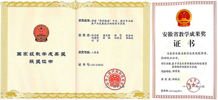 依托开发的各类课程资源,推进课赛融合信息化教学创新,学生共获得全国职业院校技能大赛和教师参加全国职业院校信息化教学大赛不断获得优异成绩,《基于信息化资源建设的财经商贸类课程诊改探索与实践》获得安徽省教育厅教学成果特等奖。