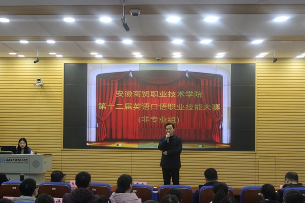 12月11日,学校第十二届英语口语职业技能大赛决赛顺利举行。党委副书记、校长李忠、党委委员、副校长郑承志、教务处处长汪伟、人文外语系党总支书记朱吉玉、人文外语系主任王锦坤、副主任刘知国到场观看了比赛。