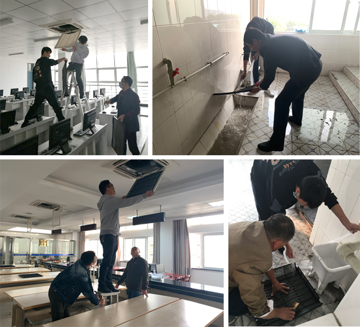 寒冬将至,机房空调又将投入新一轮的使用高峰,为保证空调使用效果,给师生创造一个温暖、健康的上课环境,支部结合岗位工作开展清洁机房空调的志愿活动。支部党员分为四个小组,对砺能楼4号楼的实训室空调进行全面清洗。