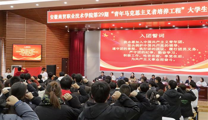 12月22日下午在学术报告厅举行了开班典礼,校党委副书记王炜,二级学院团总支书记、青年教师代表与200余名学员参加开班典礼,开班典礼由团委副书记虞昌亮主持。仪式在庄严肃穆的国歌声中拉开序幕。会上,班主任介绍了培训安排、考核要求,学员代表作了表态发言,全体学员重温入团誓词,两期班长传递了象征责任与荣光的班旗,参会领导老师为学员佩戴了团徽。