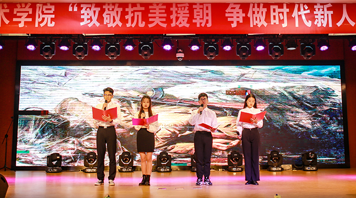 铭记伟大胜利,推进伟大事业。为纪念中国人民志愿军抗美援朝出国作战70周年,铭记抗美援朝战争的艰辛历程和伟大胜利,弘扬伟大的抗美援朝精神,鼓舞和激励广大青年学子向着实现中华民族伟大复兴的中国梦奋勇前进,校团委于10月28日下午在大学生活动中心举办“致敬抗美援朝 争做时代新人”主题团日活动。校党委副书记、纪委书记朱光应,校团委书记孙握瑜,校团委全体成员、各二级学院团总支书记以及学校300多名团员青年代表参加了本次活动,活动由校团委卢菊老师主持。