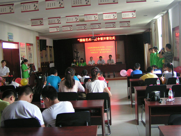 为办好此次“描绘艺术”夏令营,学院艺术设计系党总支、团总支和华强社区做了充分准备和精心安排,在结合学生专业特长以及社区需求的基础上力求打造品牌活动,促进社区发展。本次夏令营秉承“多彩暑假、快乐教学”的理念,通过开设绘画、舞蹈、体育游戏三大教学模块活动来开导小朋友们的创新思维,通过演讲、朗诵、手工、折纸、唱歌、魔术、橡皮泥塑等一些辅助活动,来扩展小朋友们的兴趣点,促进孩子们综合素质全面发展。