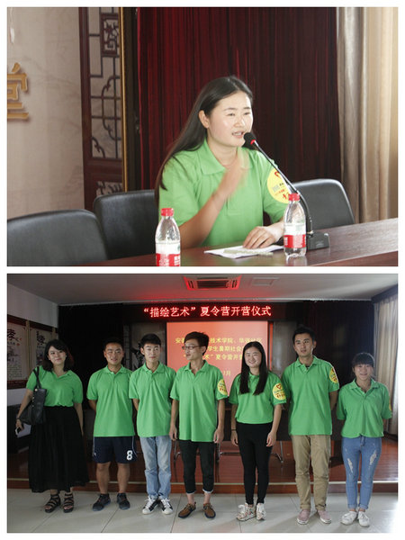 开营仪式在欢快、热烈的氛围中拉开帷幕。晋颖对我院志愿者团队的工作表现给予充分肯定,同时对“描绘艺术”夏令营的举办寄予厚望,希望能够给社区的孩子们带来一个充实、快乐的暑假。魏力感谢华强社区为志愿者们提供了实践的平台,并就此次夏令营活动的筹备情况、课程内容的设置做了介绍。魏力要求志愿者们用专业特长提升能力,用热情和爱心感染心灵,做孩子们的知心朋友和成长路上的守护者。