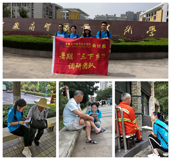 孝敬老人,是中华民族的传统美德。党的十八大以来,习近平总书记对养老保障和为老服务工作作出一系列重要指示。为了解当下老年人对于养老模式的现实需求,会计系“三下乡”小分队选取芜湖市老年人为调研对象,通过进社区入户访谈以及在公园、广场等场所进行实地调研,队员们认真记录下老人们对于城乡社会养老服务的不同需求,并重点调研了老年人主观幸福感现状及其影响因素。小分队队员们克服天气高温、部分老人不配合等因素,顺利完成前期调研取样、访谈工作,为后期调研报告的撰写打下扎实基础。