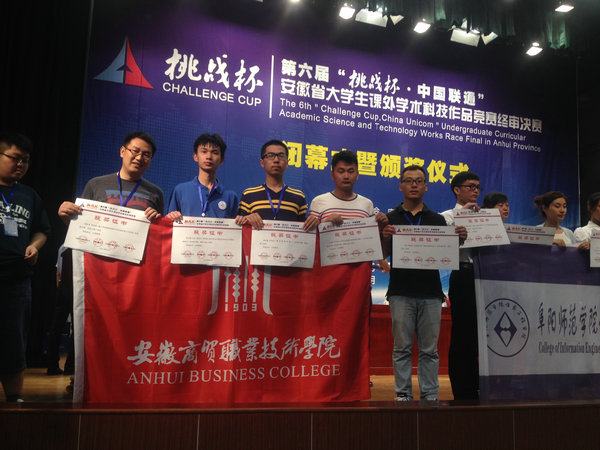 创意与激情共舞,挑战与梦想齐飞。6月4日至6月6日,安徽省第六届 “挑战杯”大学生课外学术科技作品竞赛终审决赛在安徽大学举行。我院参赛的6件作品共获得二等奖2项、三等奖4项。