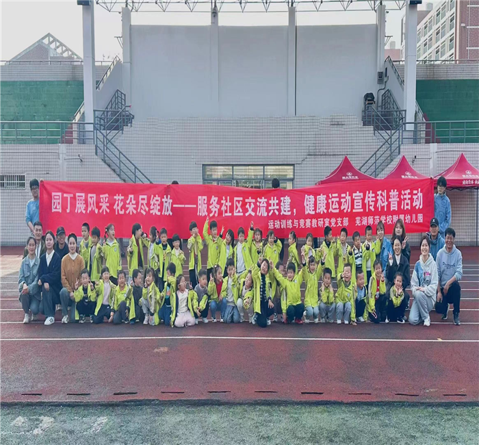3月26日下午,我校体育场迎来了芜湖师范附属幼儿园四十名活泼可爱的小朋友,基础教学部运动训练与竞赛教研室党员教师们和小朋友们共同完成了一堂充满活力与趣味的体育活动课,体育场上呈现出一幅师生和小朋友们温馨互动的画面。