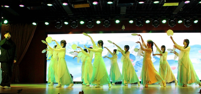 卢菊老师宣读了《校荣我荣展新风 争做爱校安商人》的倡议书,希望团学骨干以身作则发挥榜样带动作用,为培育优良学风、创建文明校园贡献力量。会上,指导老师们为学生干部颁发了工作证和聘书,既是一份荣誉,承载着他们的努力与奉献,也是一份责任,激励着他们勇于担当。现场还表演了舞蹈、合唱等节目,展现了我校学子多才多艺、昂扬向上的风采。