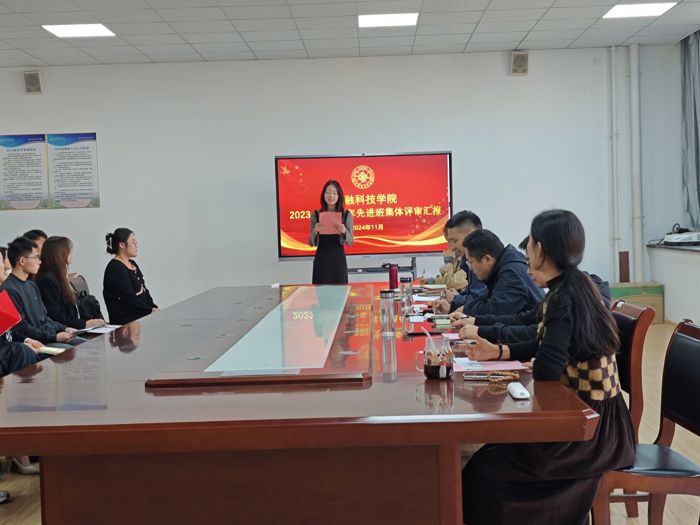 为进一步培养良好班风班貌,充分发挥先进班集体的示范引领作用,进一步激励全院学生不断积极进取,向优看齐,11月12日下午,金融科技学院2023-2024学年先进班集体评选评审汇报会在学院会议室举行。学院党总支书记朱文杰、院长胡增芳、副院长丁婷、办公室主任陈立弘、专任教师马静以及团总支负责人吴勇园担任此次评委,各候选班级代表、辅导员老师以及部分24级学生代表也参加了此次会议。