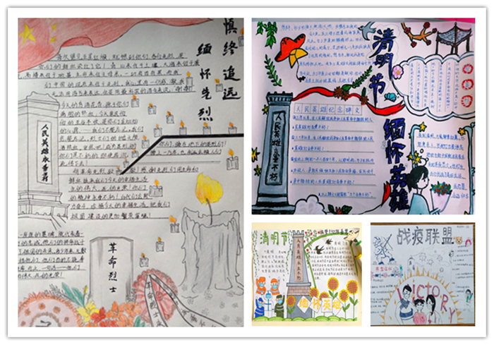 此外,本次主题活动还开展了“2020 年清明祭英烈”主题征文活动和“2020 年清明祭英烈”主题手抄报评比活动。缅怀先烈、祭扫英烈是弘扬英烈精神、传承红色基因的重要组成部分。清明节将至,受疫情影响,今年祭英烈方式改变,但缅怀先烈的感情和责任没有变。此次征文内容要求围绕新冠肺炎疫情防控等重大事件,或以英雄烈士事迹及其子孙后代传承延续英烈精神,体现英烈精神后继有人的典型事迹,以纪念烈士、崇敬英雄、传承英烈精神为主线。可结合自身所学、所见、所闻、所历、所思,表达对革命先烈的追思怀念、对新时代英雄的崇敬学习,讲好英烈故事,弘扬英烈精神,赓续红色基因。“2020年清明祭英烈”主题手抄报评比活动,以手抄报的形式开展纪念革命先烈活动,引导广大团学青年慎终追远、缅怀先辈,铭记历史、学会感恩,继承先烈遗志,珍惜幸福生活,不断增进热爱祖国、热爱人民、热爱中华民族的情感,把个人理想追求融入实现中国梦的共同奋斗之中。