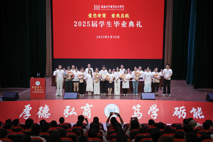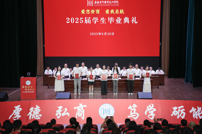 骊歌轻唱,扬帆启航。6月28日上午,“爱您安商 爱我启航”2025届毕业典礼在行知大礼堂正式举行。在芜校领导王炜、黄继胜、汤飚,各单位党政负责人、教师代表、校友代表与近千名毕业生齐聚一堂,共同见证这一满载青春记忆与未来希冀的重要时刻。