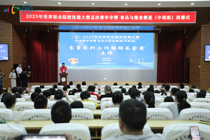 黄义兵宣布2025年世界职业院校技能大赛总决赛争夺赛“食品与粮食赛道(中职组)”圆满闭赛。