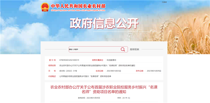 我校两名教师和课程入选农业农村部首届涉农职业院校服务乡村振兴“名课名师”资助项目