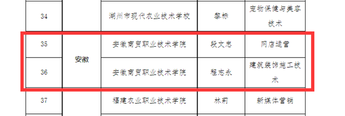 近日,农业农村部公布了《首届涉农职业院校服务乡村振兴“名课名师”资助项目名单》,安徽省仅我校入选该项目,我校段文忠老师主持的《网店运营》课程、程志永老师主持的《建筑装饰施工技术》课程成功入选。