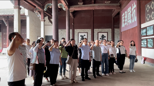 在新四军军部旧址纪念馆大厅重温入党誓词,党员们举起右拳,面向党旗庄严宣誓,重温入党时对党和人民作出的庄严承诺,坚定初心使命,砥砺奋进前行。庄严的誓词激荡着在场的每一位党员的心灵,大家纷纷表示,要把入党誓词作为自己终身追求、终身修养、终身实践,踔厉奋进、笃行不怠,以优异的工作成绩为学院和学校事业发展贡献力量。