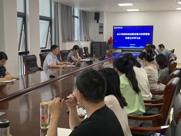 为深入贯彻学校科研政策要求和科技工作例会精神,推动学院科研工作高质量发展,会计学院于6月11日组织召开“科技创新发展与科研管理政策文件”专题学习会。会议由院长鲁学生领学,全体教师参加。