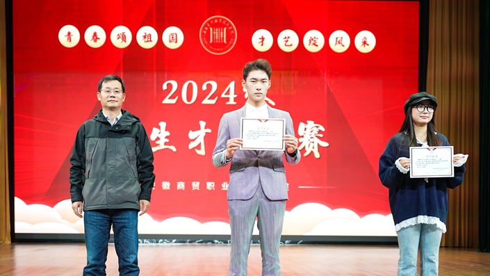 经过班级初选、学院初赛、学校复赛,共有11支队伍参加决赛。参赛队伍以饱满的状态、精湛的才艺,为观众带来了一场视听盛宴。他们用歌声、舞蹈、朗诵、乐器、合唱等不同的艺术表现形式,深情讲述了对青春的热爱,对祖国的赞美。其中信息与人工智能学院表演的情景朗诵《英雄赞歌》,声音铿锵有力,字字句句都饱含着对英雄的崇高敬意,让在场的每一个人都深受感动。国际商务与旅游学院表演的舞蹈《觉醒 青年》,通过富有张力的舞姿,诠释了在战争年代青年学子为革命胜利、民族解放所做的不懈奋斗,展现了当代大学生的爱国情怀和时代担当。